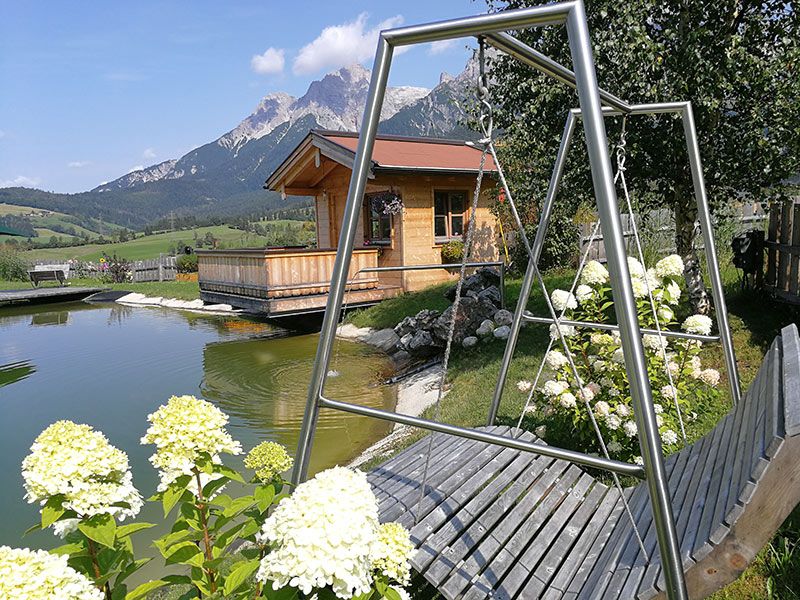 Und während sich die Eltern genüsslich in den Liegestühlen zurücklehnen und die Seele baumeln lassen, können die Kids ins kühle Nass unseres hofeigenen Schwimmteiches abtauchen und die Ferienzeit nach Herzenslust genießen.
